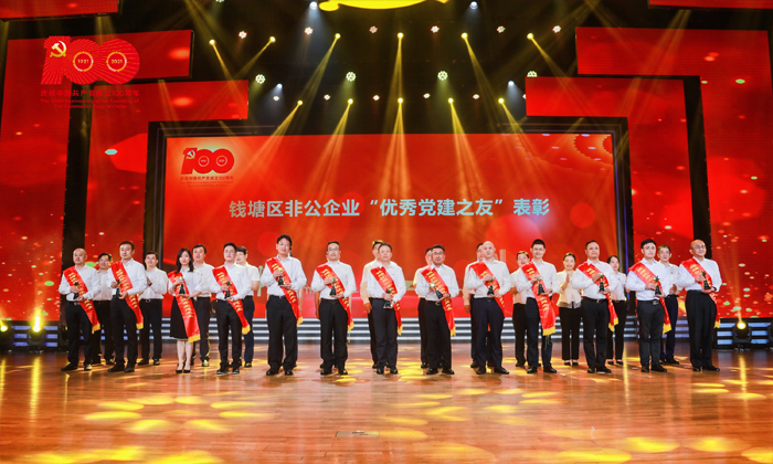 The party was first addressed by Ke Jixin, the Deputy Mayor of Hangzhou City and Secretary of the District Party Committee, and then successively addressed the party members with more than 50 years of party age, the city’s “two priorities and one first”, outstanding party members in the district, outstanding party workers in the district, advanced basic-level party organizations in the district, Representatives of outstanding party building friends from non-public enterprises in the district presented awards. Guo Jianyue, general manager of Zhongxin Wafer, was awarded the "Excellent Friend of Party Building" from a non-public enterprise in Qiantang District, Hangzhou.